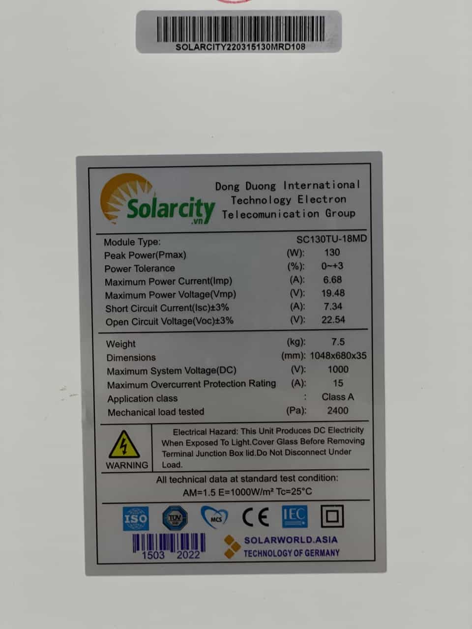 * Thông số kỹ thuật tấm PIN NĂNG LƯỢNG MẶT TRỜI MONO 130W